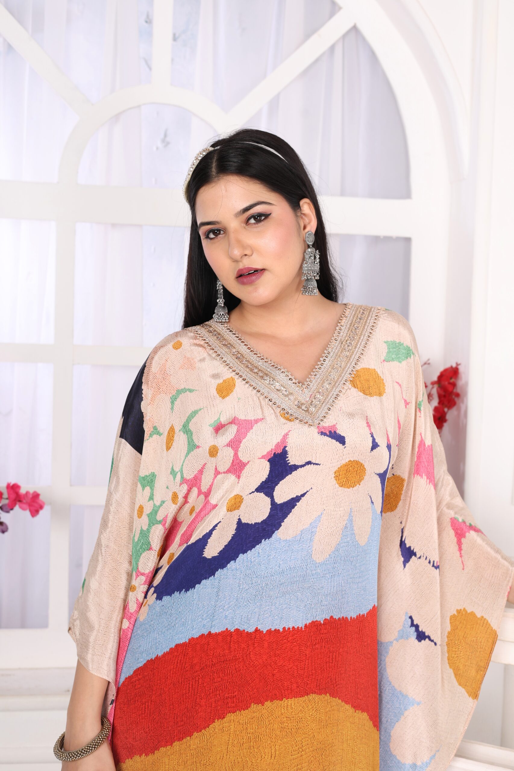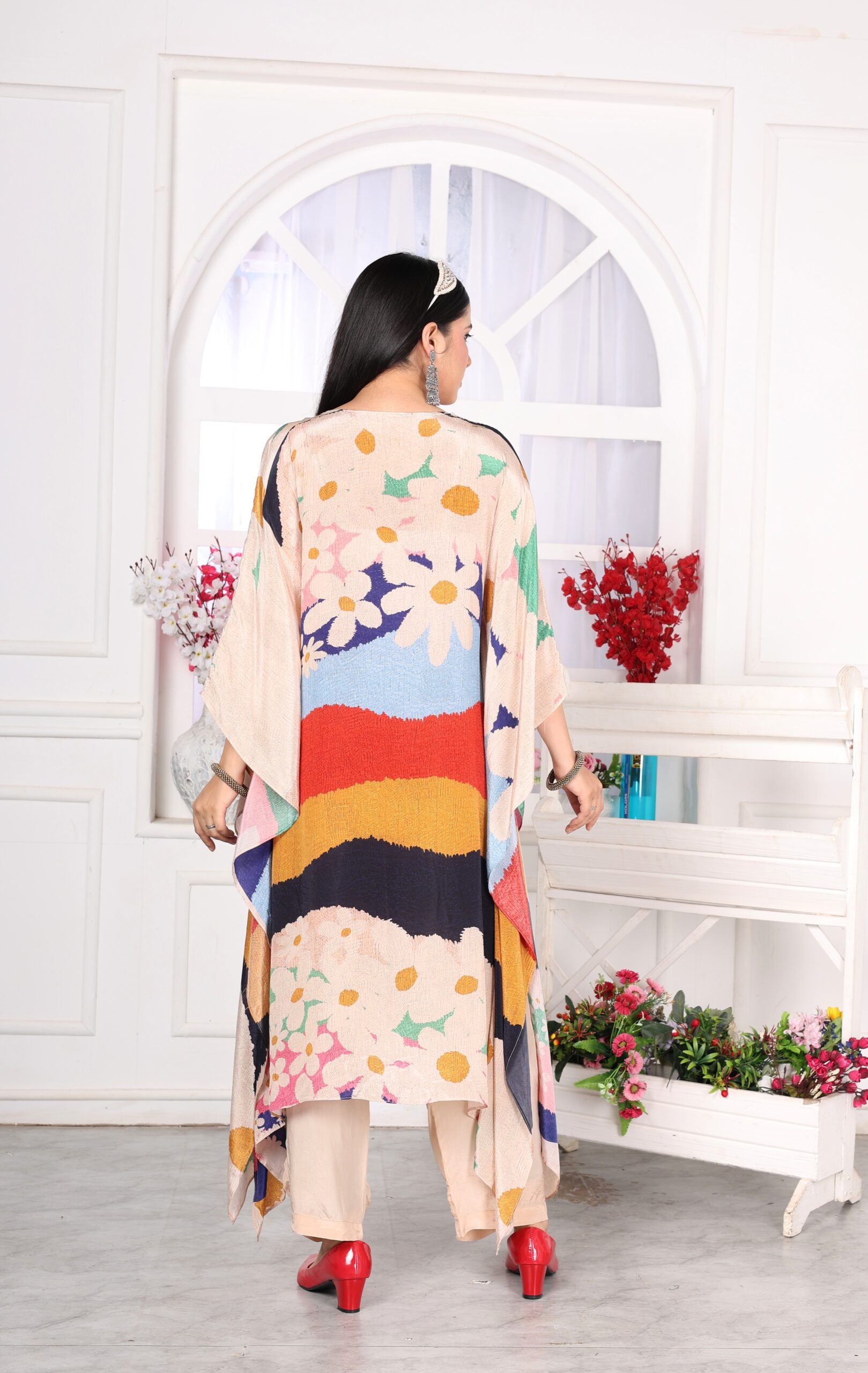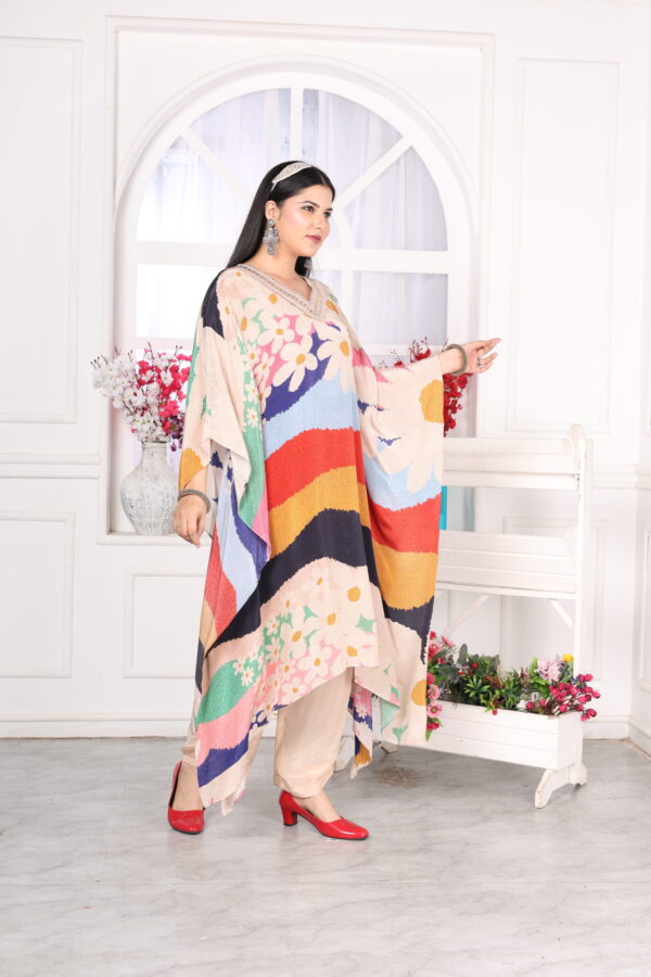 Step into elegance with our Digital Print Natural Crepe Kaftaan Set, adorned with intricate hand-embroidery and delicate lace detailing along the neckline. This flowy, lightweight outfit is perfect for both casual and festive occasions, offering comfort and style in one beautiful ensemble. Swipe through to see the fine craftsmanship up close!