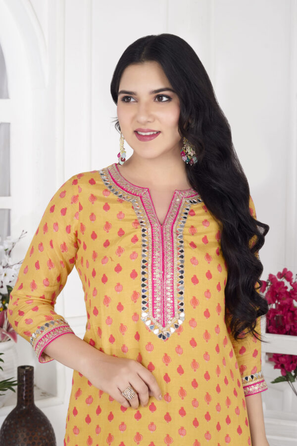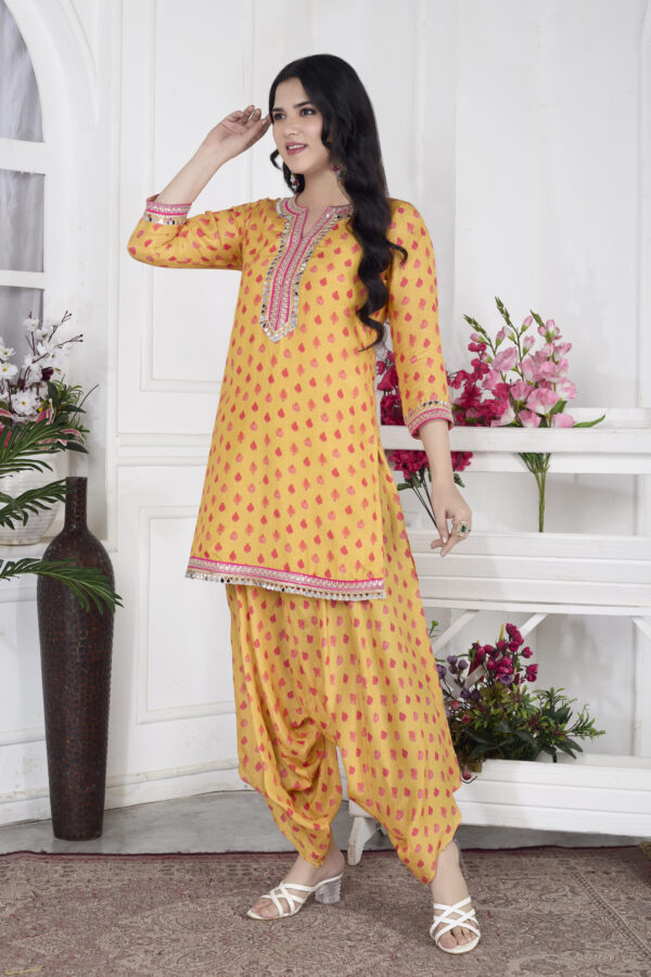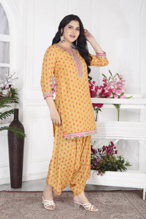 Our Digital Print Muslin Dhoti Kurta Set is crafted for modern festive flair – featuring soft, breathable fabric and highlighted with mirror lace detailing on the neck and sleeves. Perfect for celebrations, vacations, or a standout day look 🌿