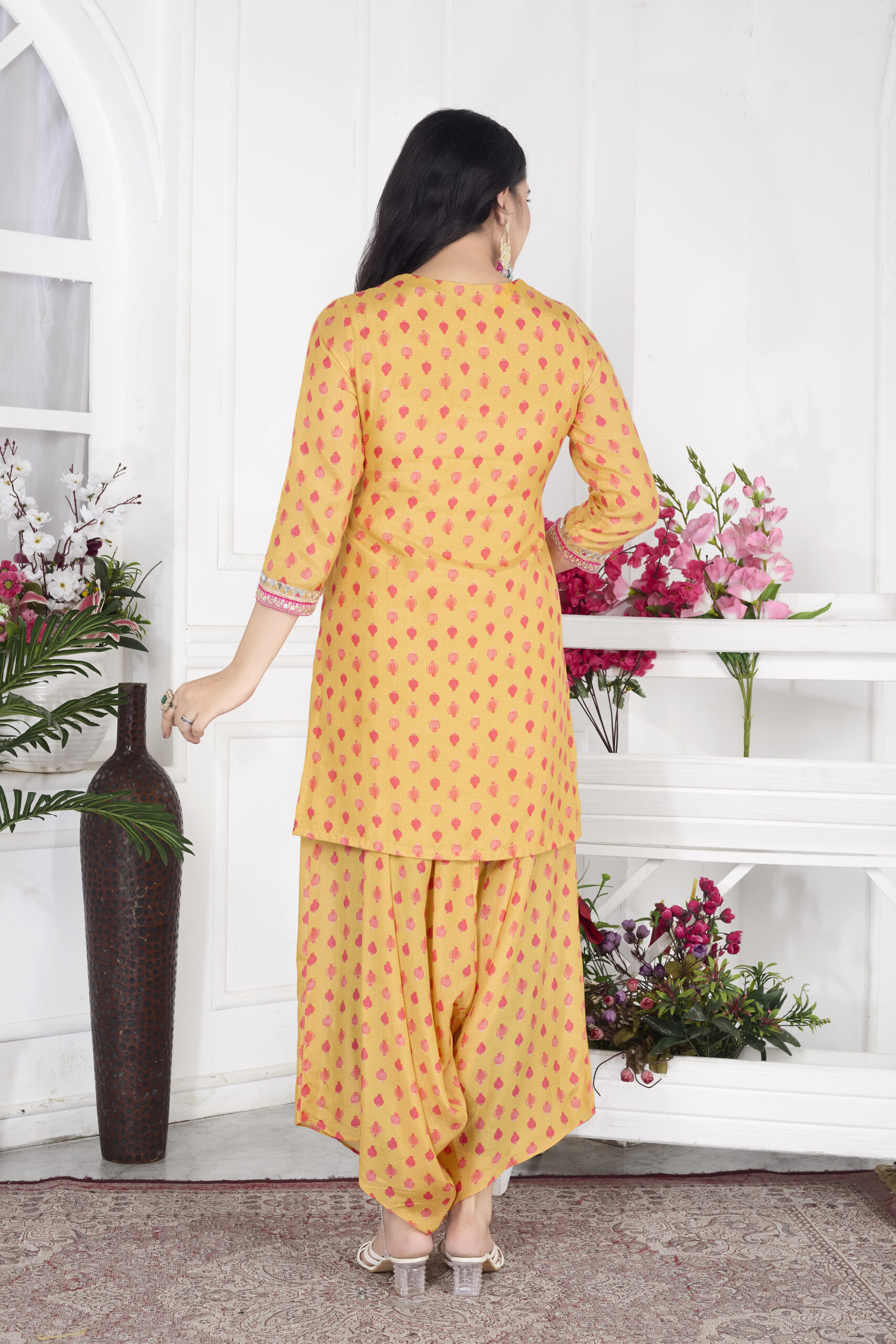 This yellow drape dhoti set is just beautiful. Felt so so so pretty after wearing this!!! The Tunics always amazes me with its outfits. It was just beyond beautiful. Must buy!!!!💛💓