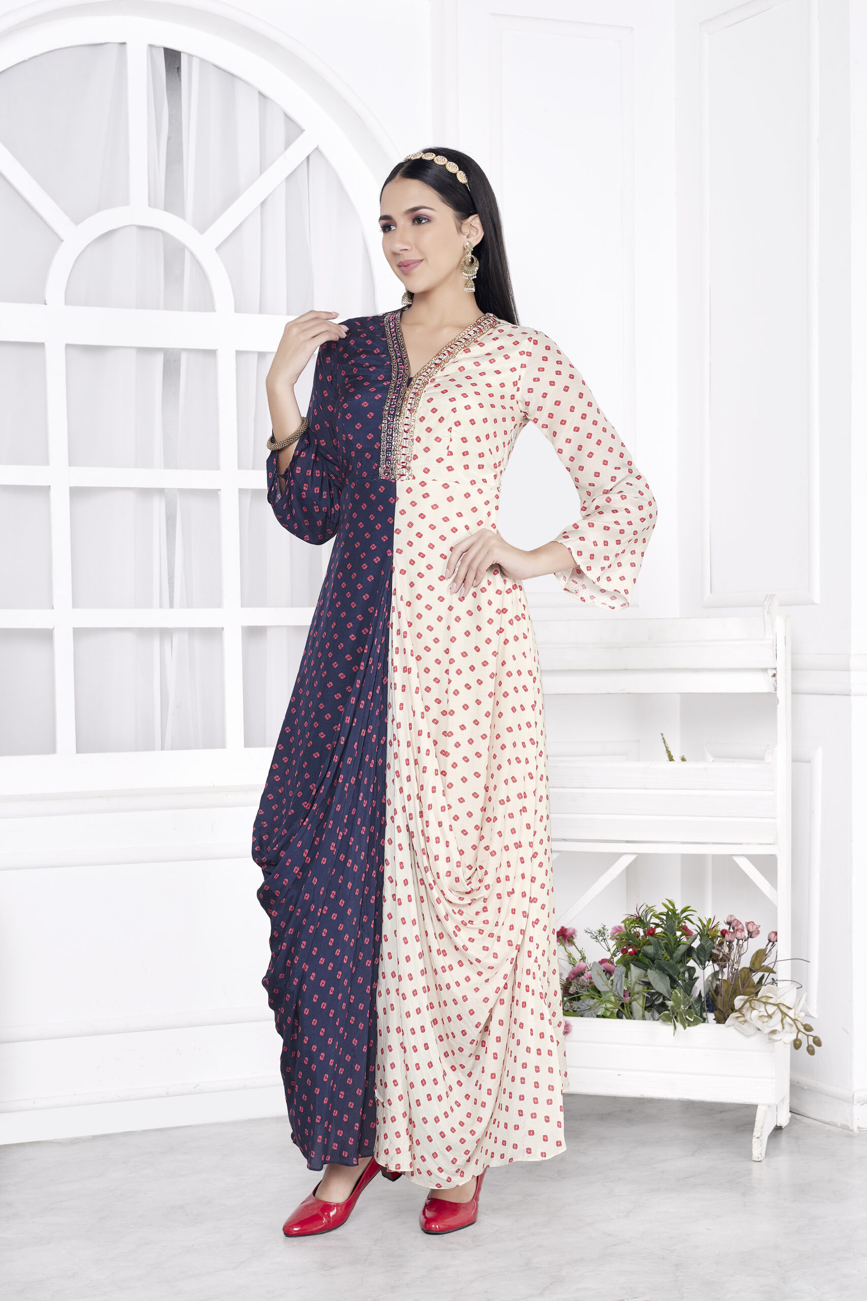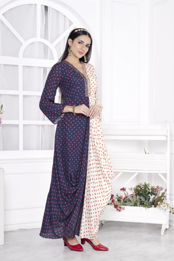 - DESIGN-Blue and Cream Combined Drape Tunic