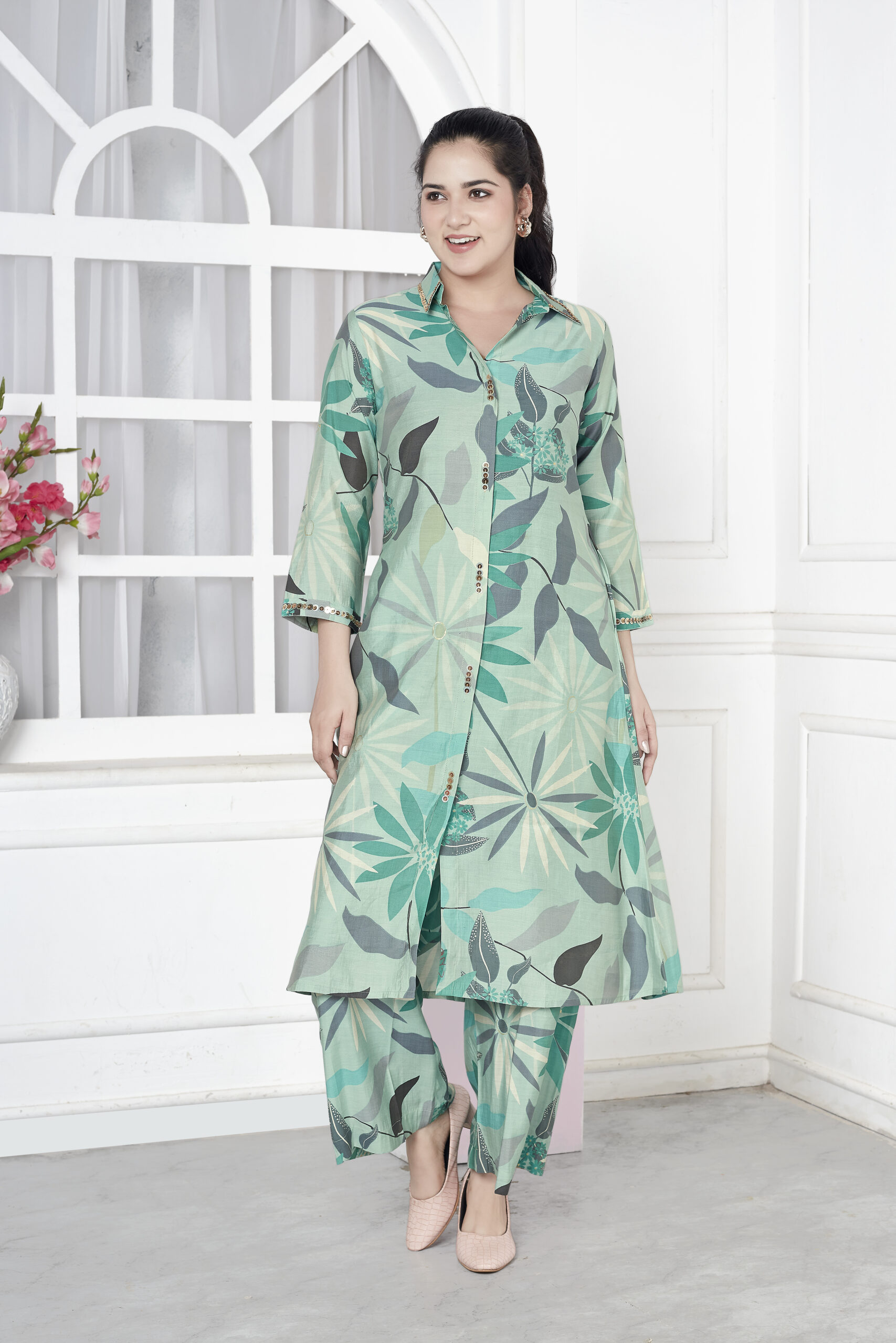 SIZE GUID: This outfit is designed with a comfortable fit in mind and has non-stretch fabric .For a bust measurements of 38 inches , please select a Size40(Large) - CARE INSTRUCTIONS: Dry clean only to preserve the intri