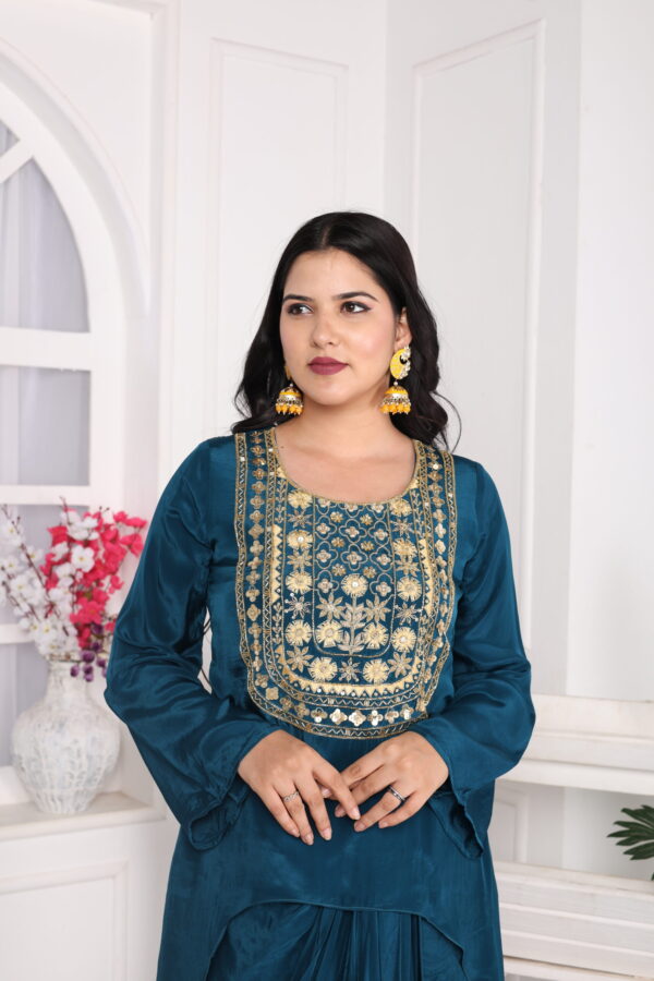 - SIZE GUID: This outfit is designed with a comfortable fit in mind and has non-stretch fabric .For a bust measurements of 38 inches , please select a Size40(Large) CARE INSTRUCTIONS: Dry clean only to preserve the intricate details and fabric quality