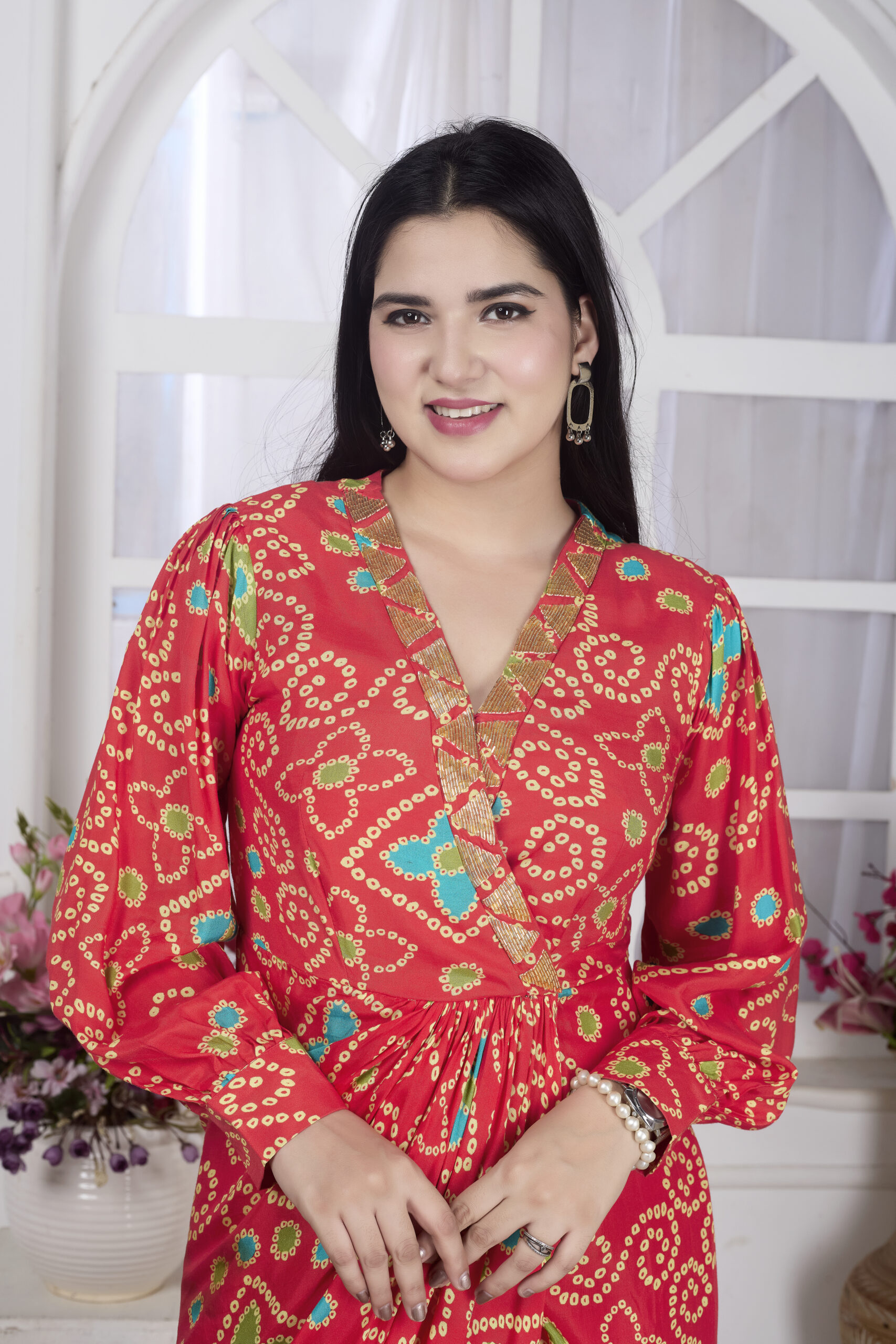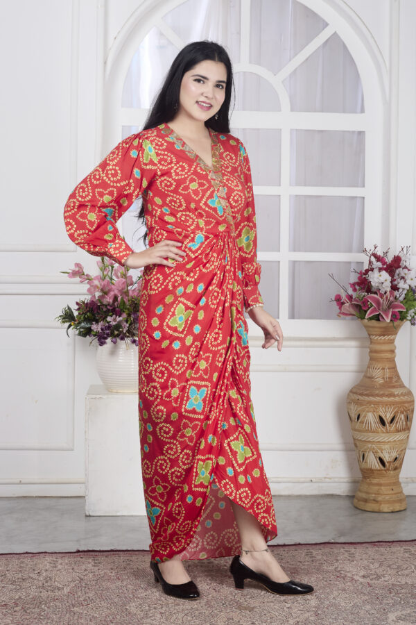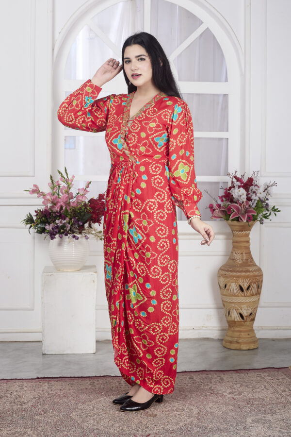 The Bandhej print looks so vibrant and the drape style makes it very unique. Loved the overall look.