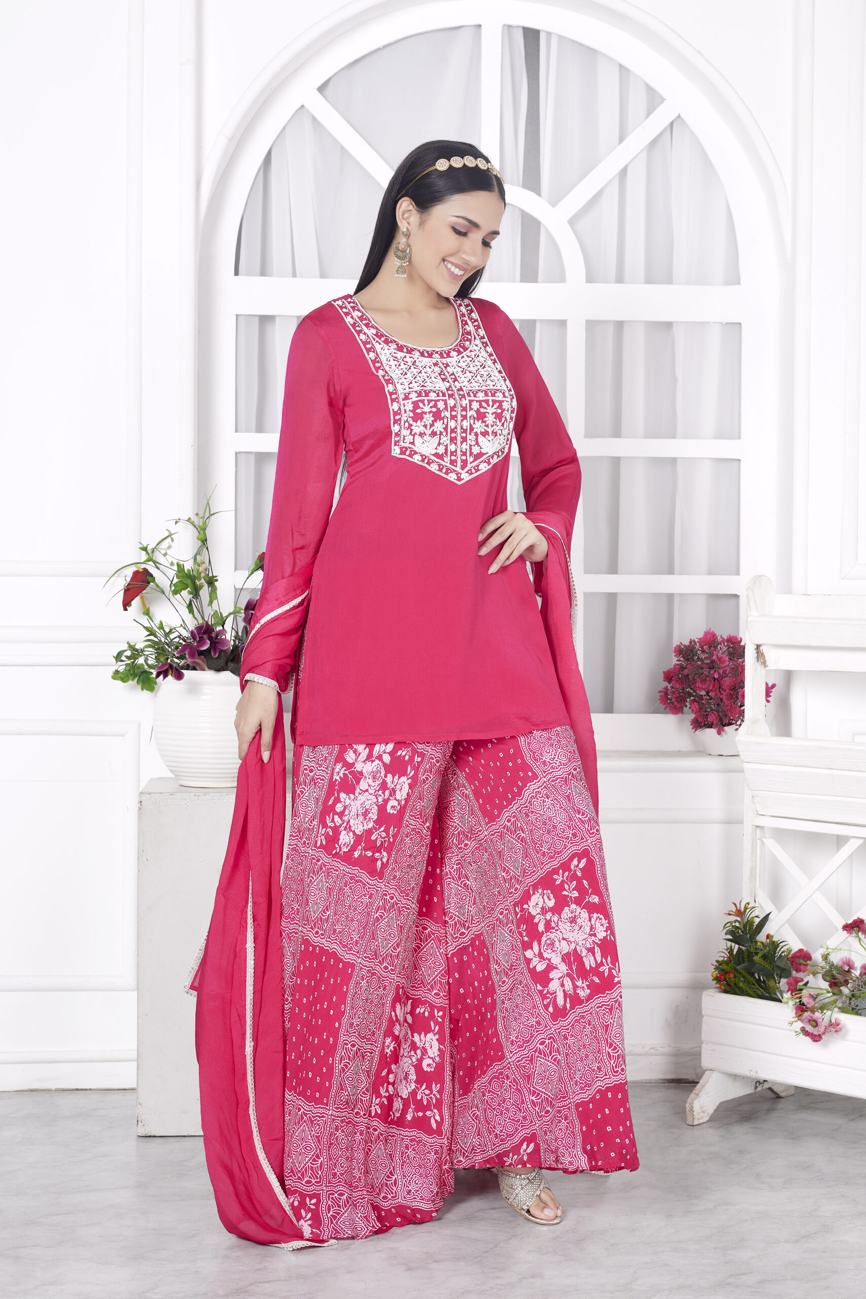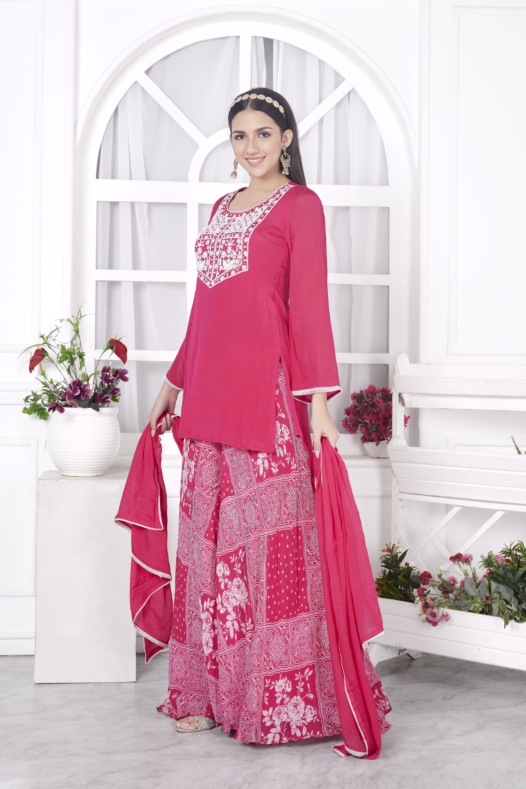 • FABRIC-Kurta Chinon and Sharara Chinon print